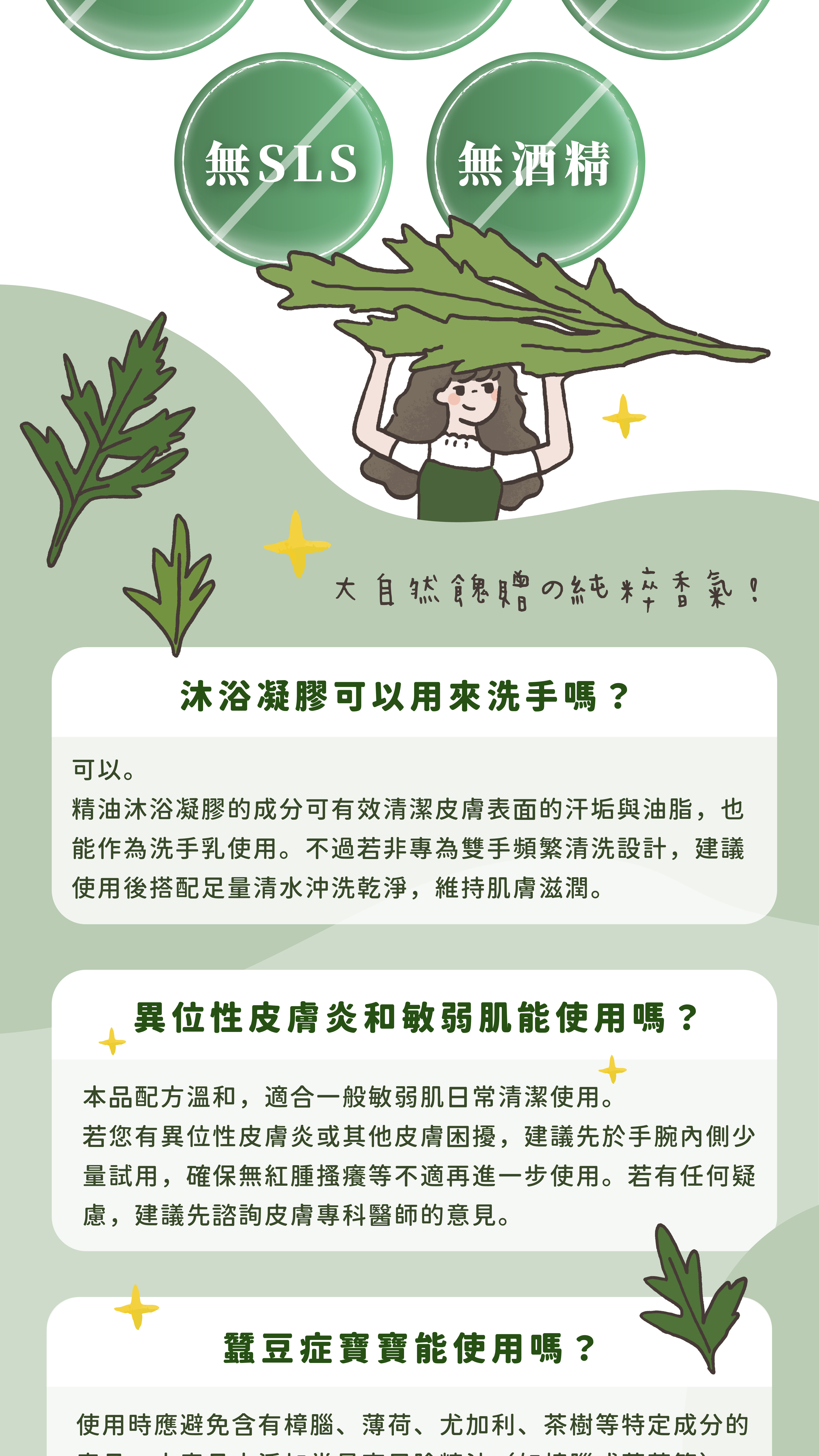 成分:純水、檸檬酸、植萃潔淨因子APG、椰子油系界面活性劑、天然植萃皂液、植萃胺基酸、甘油、食鹽、月桃純露、西伯利亞冷杉萃取物